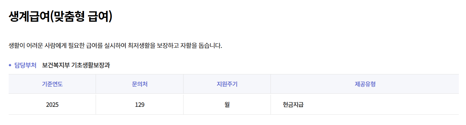 2025년 생계급여 신청자격과 금액이 인상되었습니다.